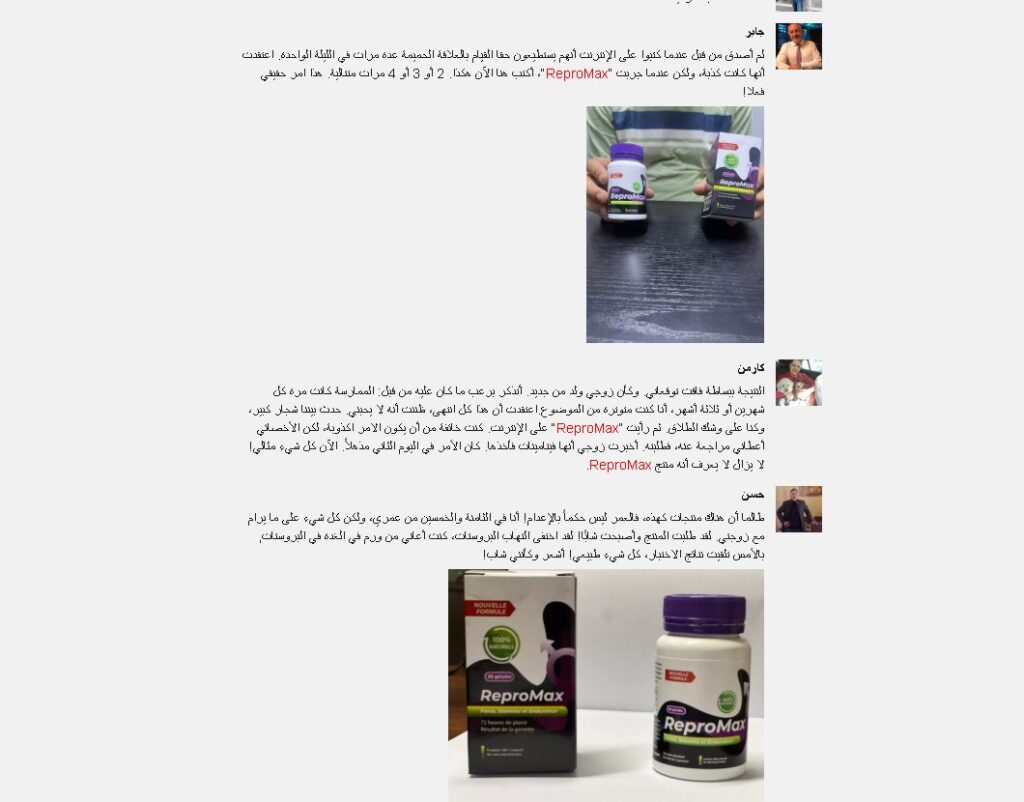 ReproMax est un complément alimentaire conçu pour soutenir la vitalité masculine, la performance et la confiance au Maroc, grâce à une formule naturelle élaborée selon des standards de qualité reconnus.